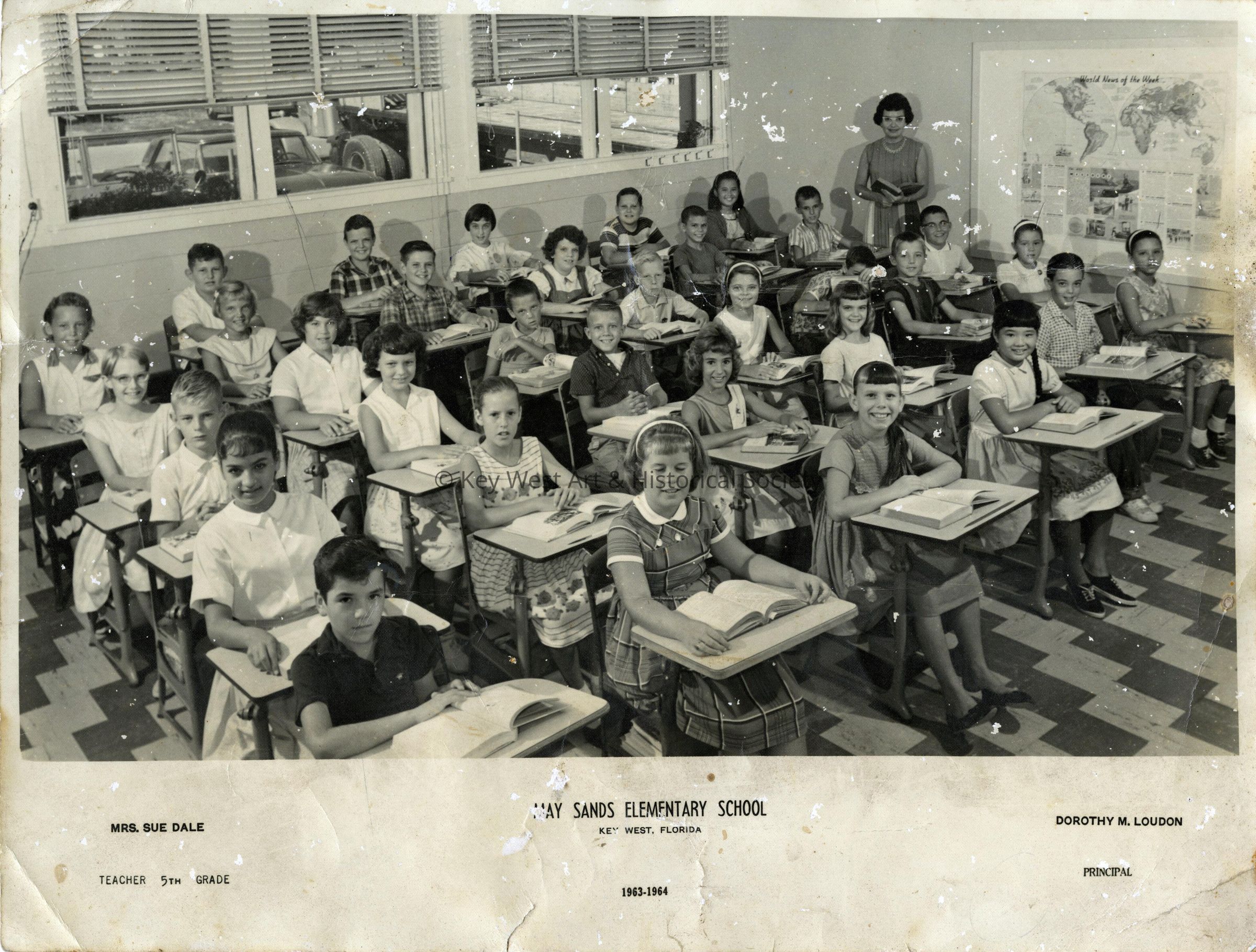 Black and white class photograph of May Sands Elementary School's fifth grade class. Mrs. Sue Dale was the teacher.