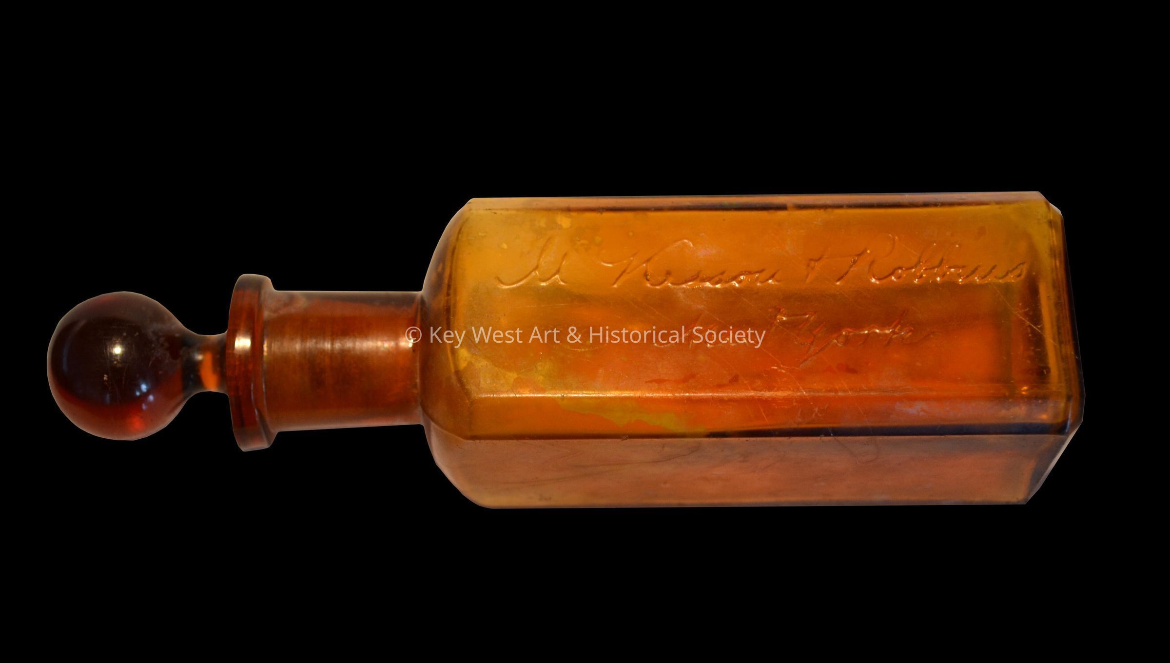 Amber glass bottle stopper belonging to the McKesson & Robbins Pyrozone bottle. The stopper was originally excavated by the donor's mother, Grace Curlee, during the restoration of Fort Zachary Taylor in the 1960s.Collection