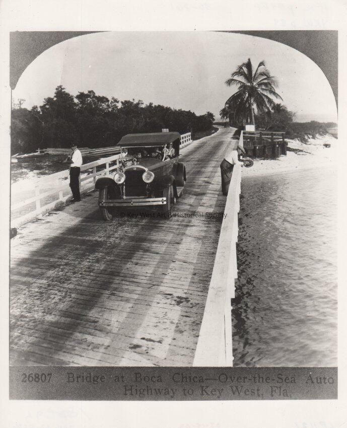 Men and a car on the Boca Chica Bridge.