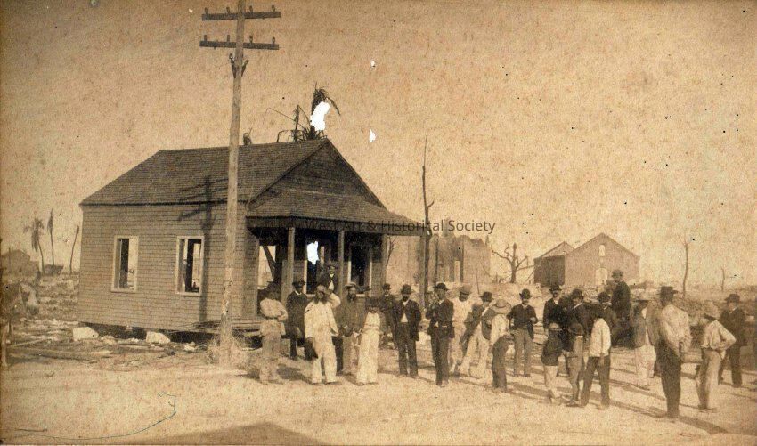 Men in front of house post Hurricane. Charlotte M. Larranaga, 620 Elizabeth Street, Key West, circa 1909-1910.Collection