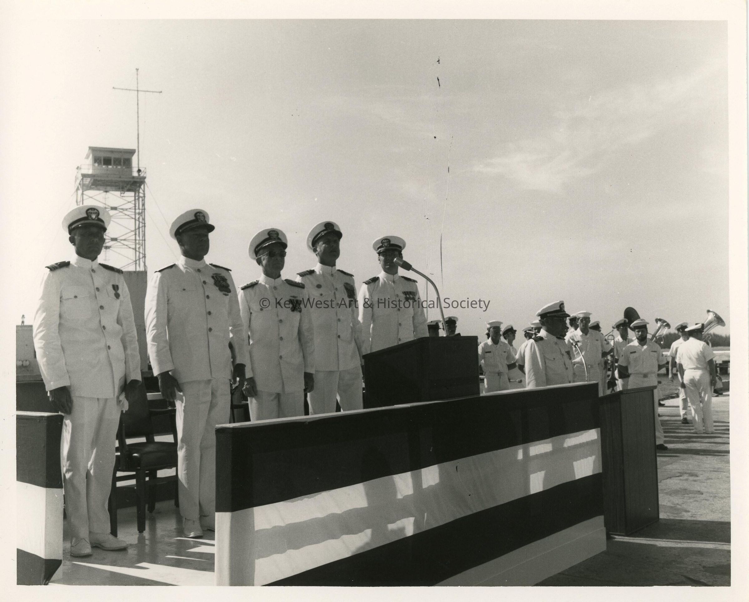 Men in uniform at a ceremony.
