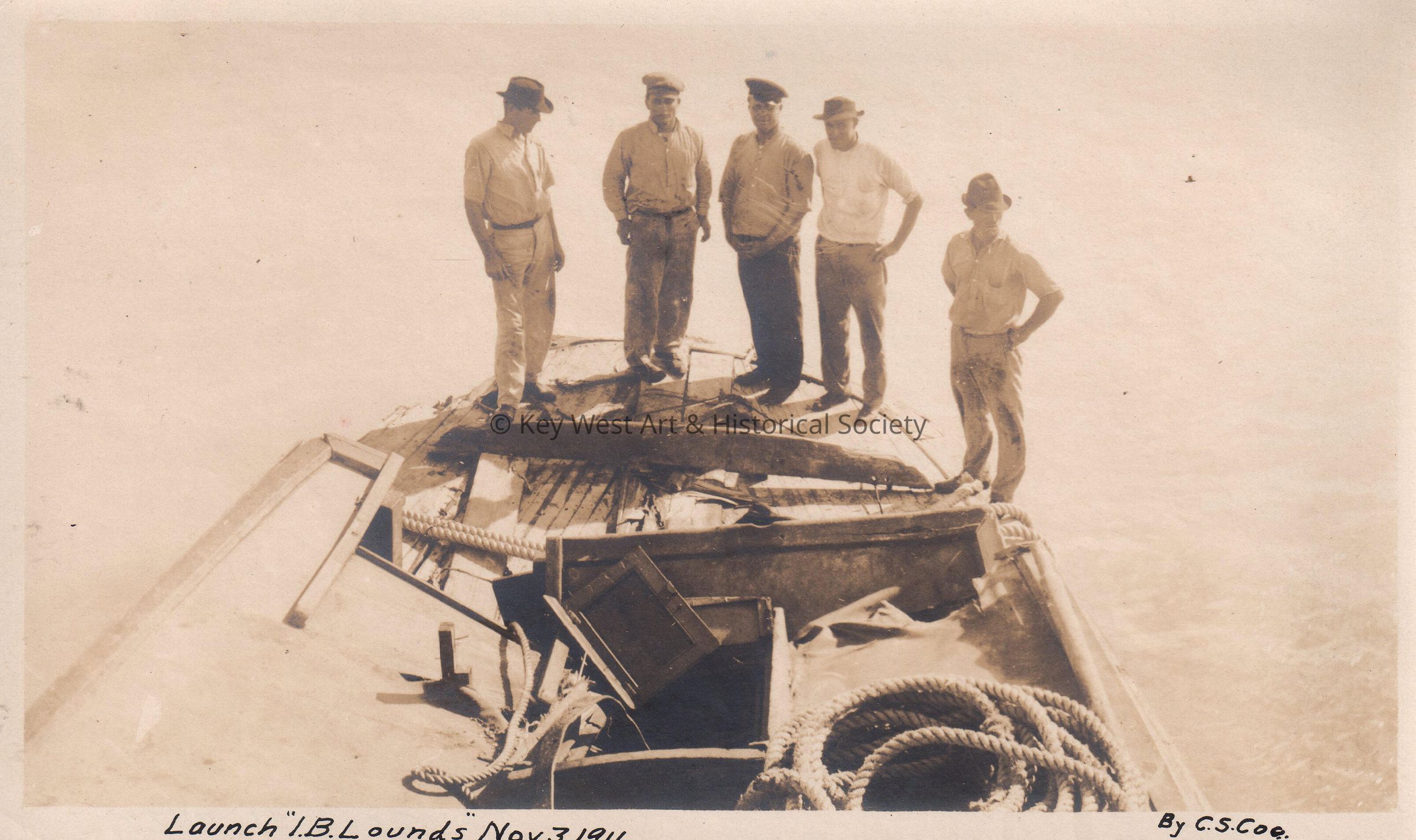 Men with a boat. Launch "I.B. Lounds" November 3, 1911.Collection