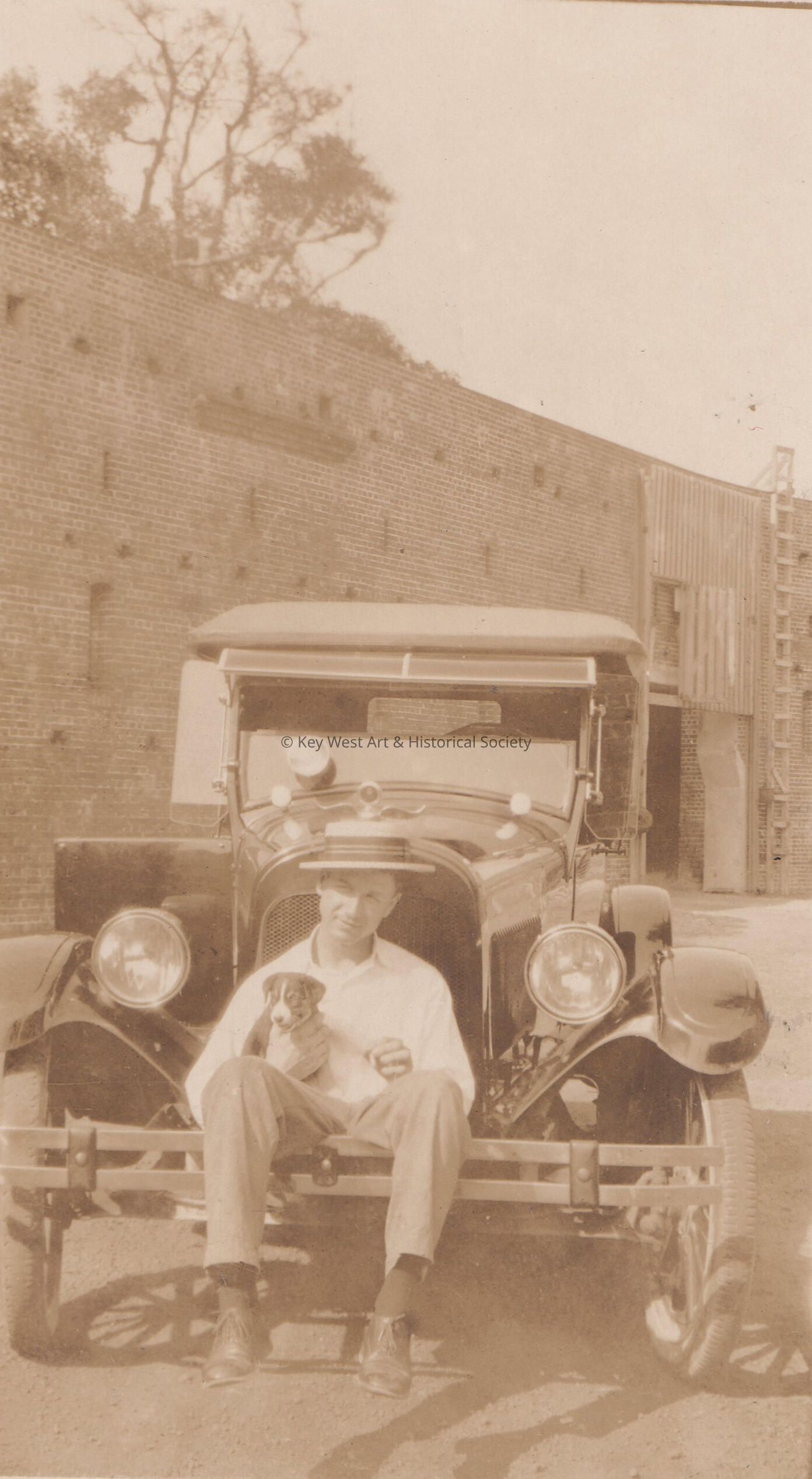 Merritt and Chevrolet (man, dog, and car), in 1925.Collection