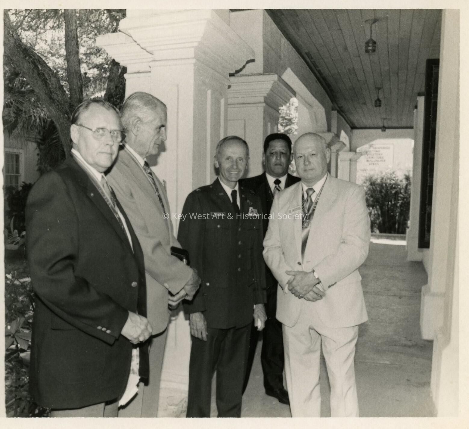 Black and white photograph of military veterans outside of St. Paul's Episcopal Church at 401 Duval Street.