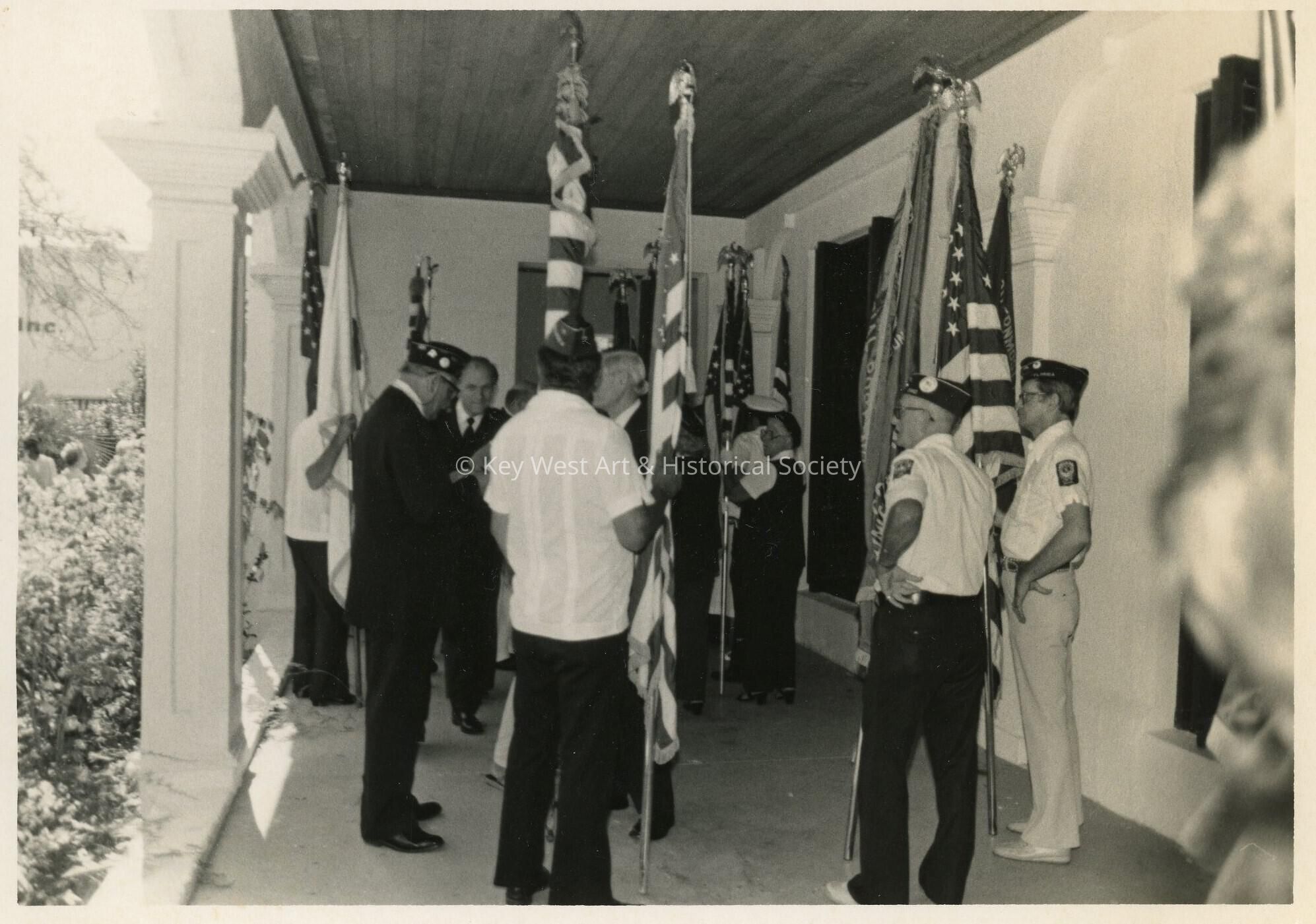 Black and white photograph of military veterans outside of St. Paul's Episcopal Church at 401 Duval Street.