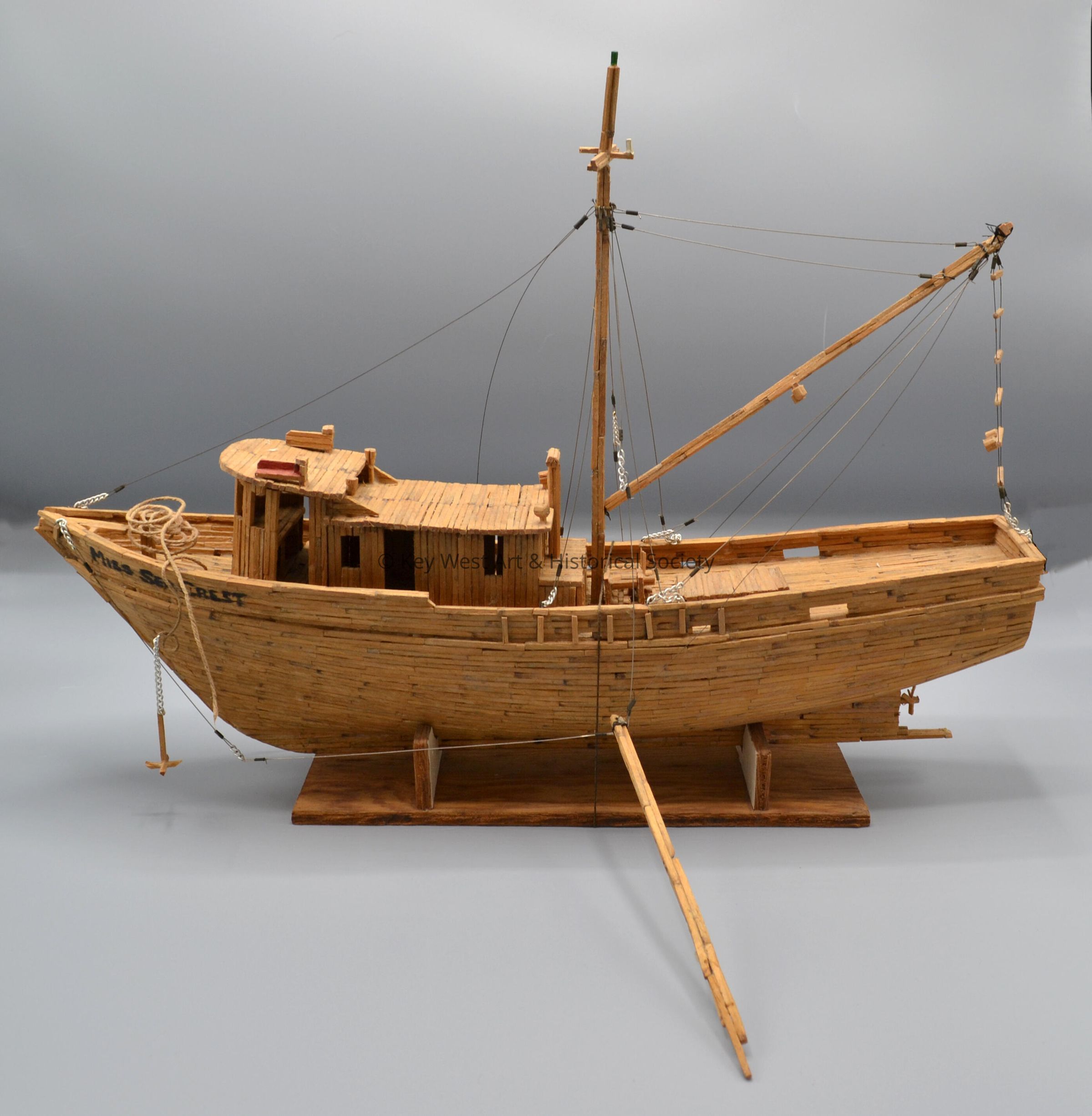 Shrimp boat model of 'Miss Sea Crest' made entirely from matchsticks, wire and string.Type of Sculpture
