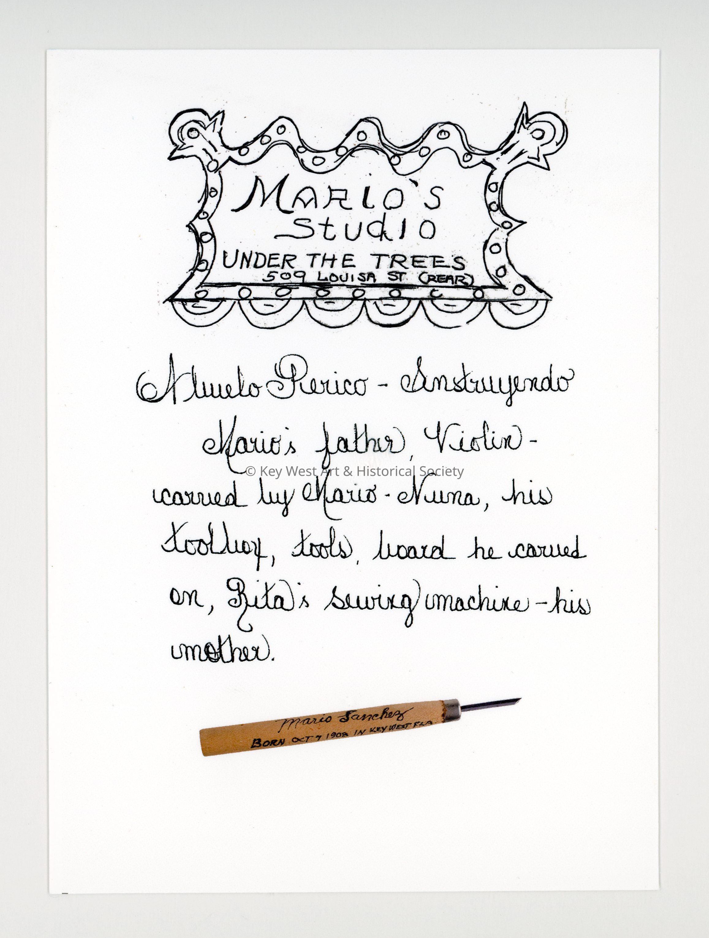 Mock Up of Mario Sanchez's Studio Under the TreesEntry/Object ID