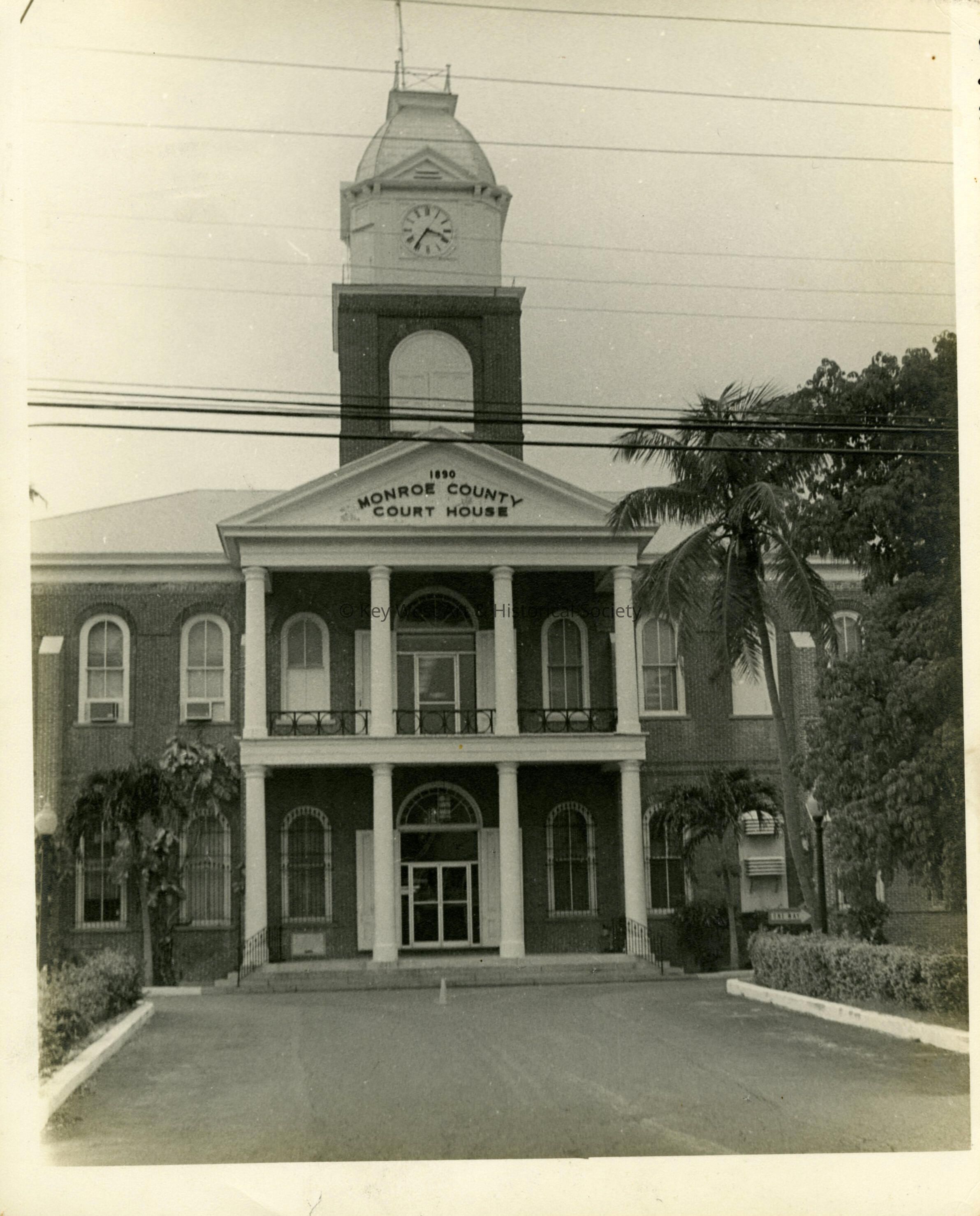 Black and white photograph of the Monroe County Courthouse at 500 Whitehead Street.