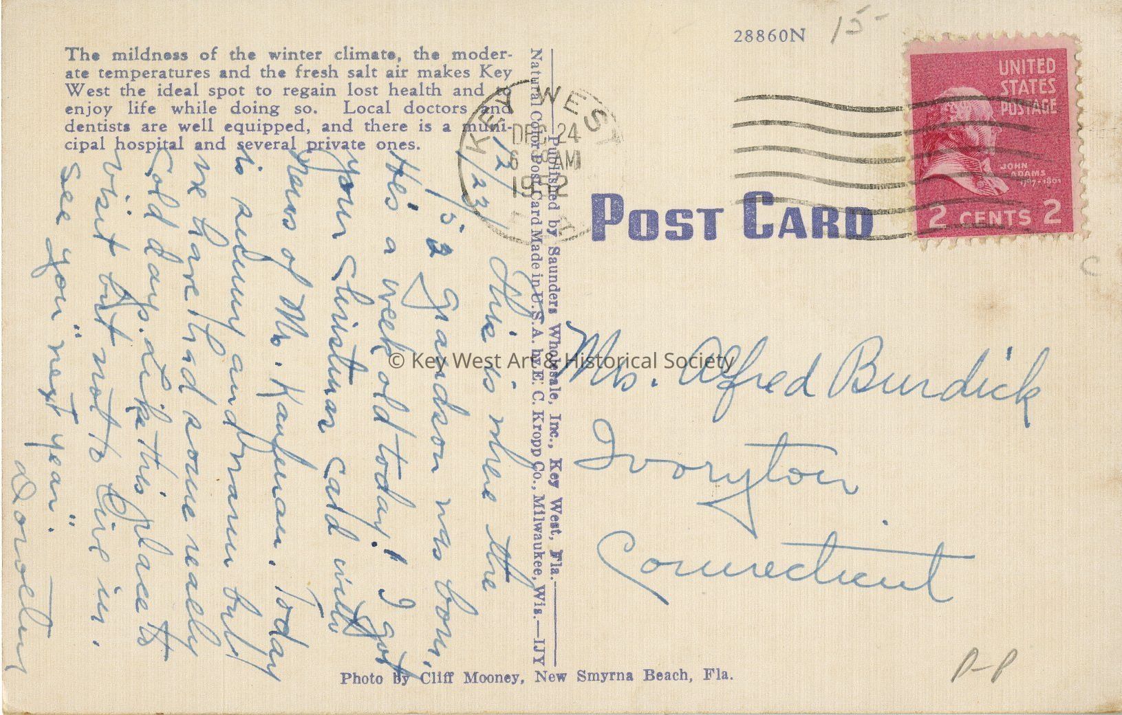 12/23/52 - This is where the grandson was born. He's a week old today! I got your Christmas card with news of Mr. Kaufman. Today is ... we have had some really cold days. Like this place to visit but not to live in. See you "next year." DoroethyDimensions