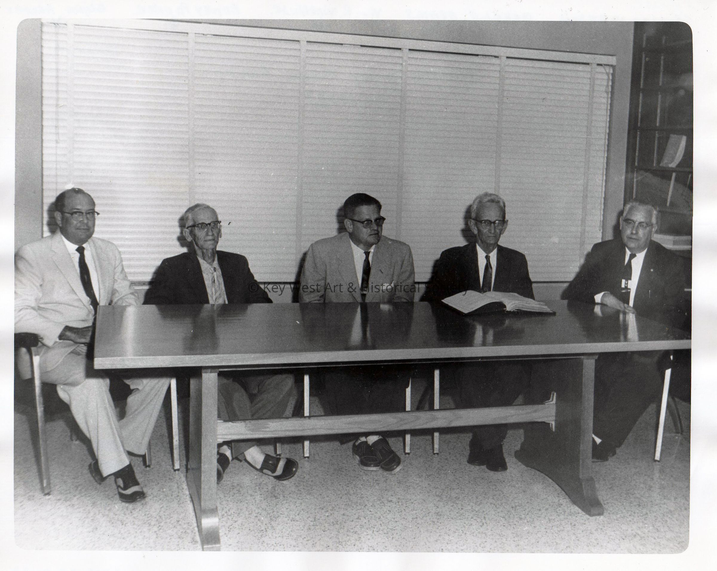 Black and white photograph of members of Monroe County School Board (l-r) Keller Watson, Gerald Adams, William R. Warren, Jr., Edney Parker and Glenn Archer.Collection