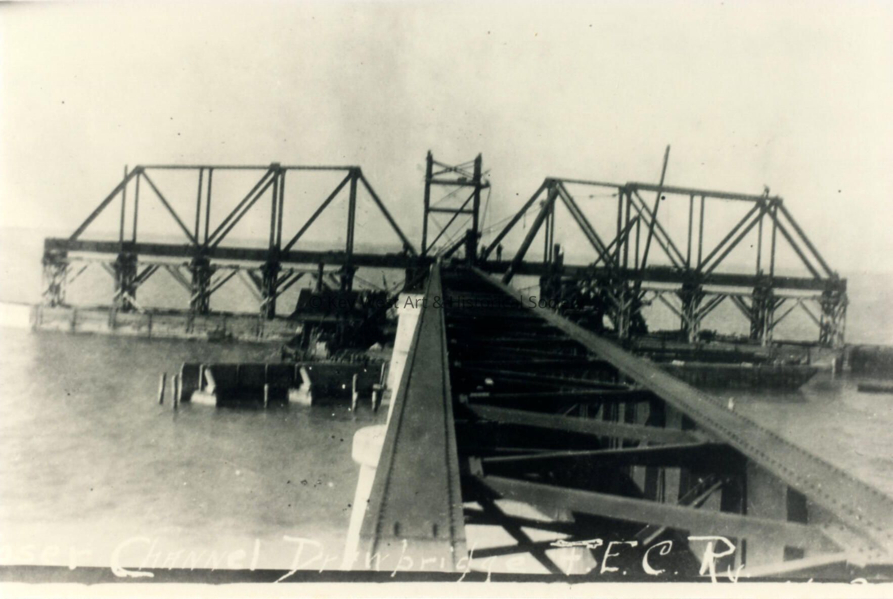 Black and white photograph of the Moser Channel Bridge, part of the Seven Mile Bridge, built by the Florida East Coast Railway.