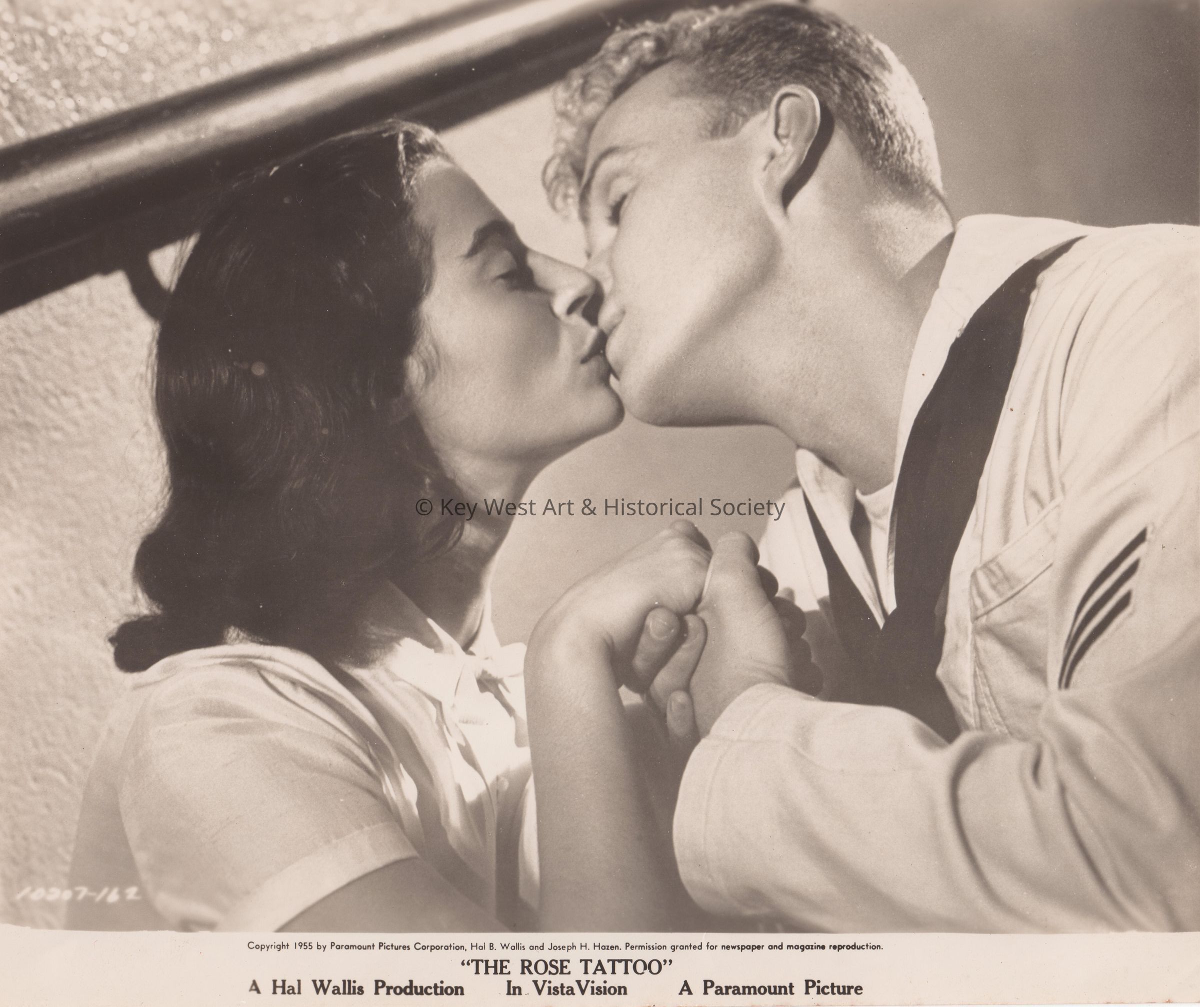 Black and white movie still photograph from 'The Rose Tattoo' by Tennessee Williams. The photo was distributed by the Paramount Pictures Corporation.