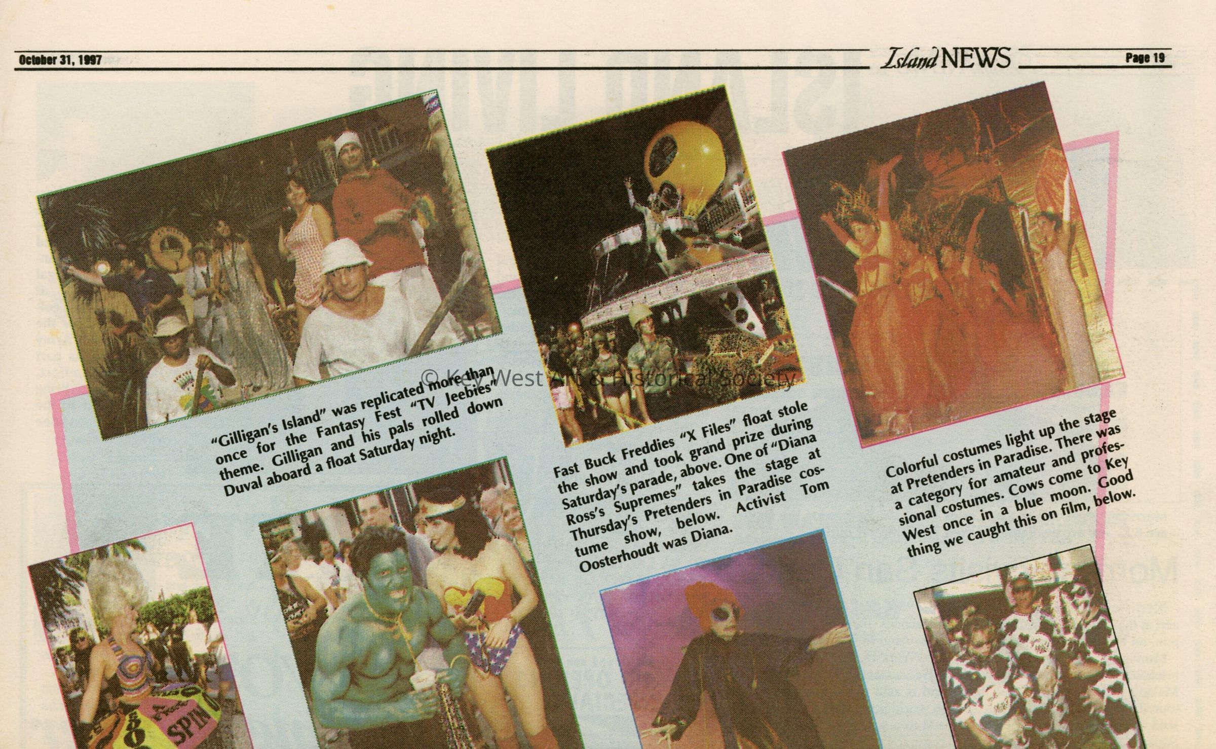 Multiple pictures and captions of Fantasy Fest in the Island News newspaper