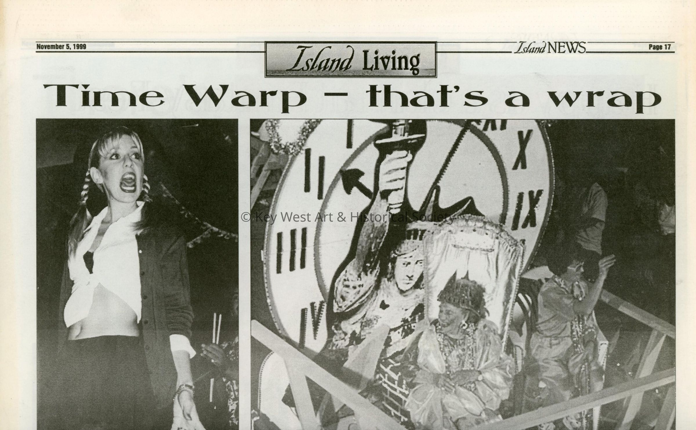Multiple pictures in the Island Living newspaper of Children's Day and Fantasy Fest.