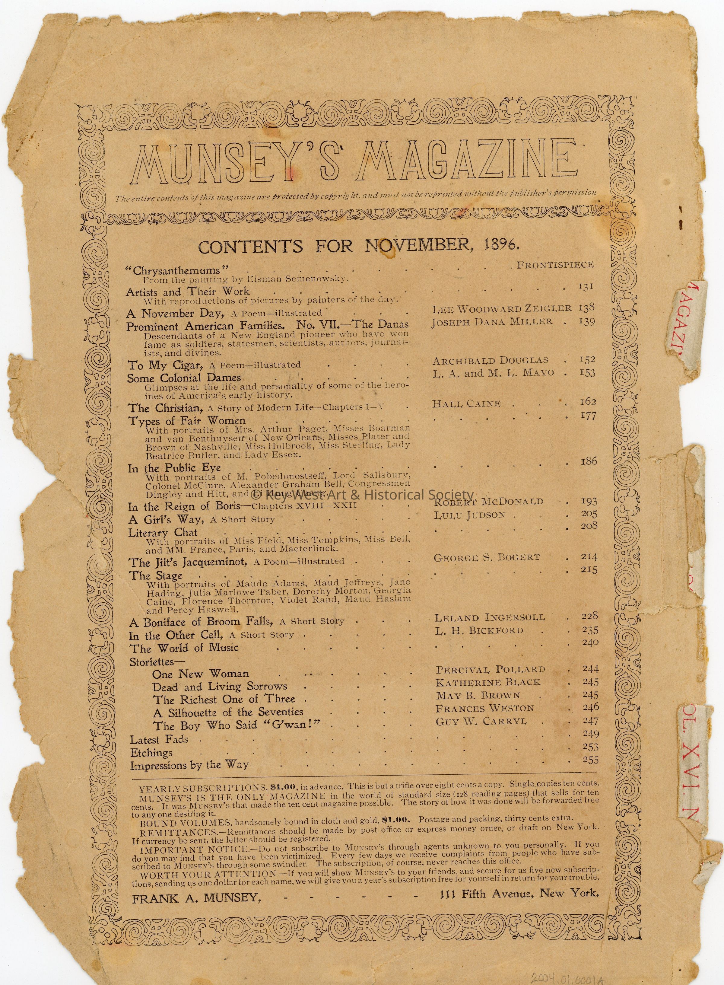 Cover of November 1896 Edition of Munsey's Magazine