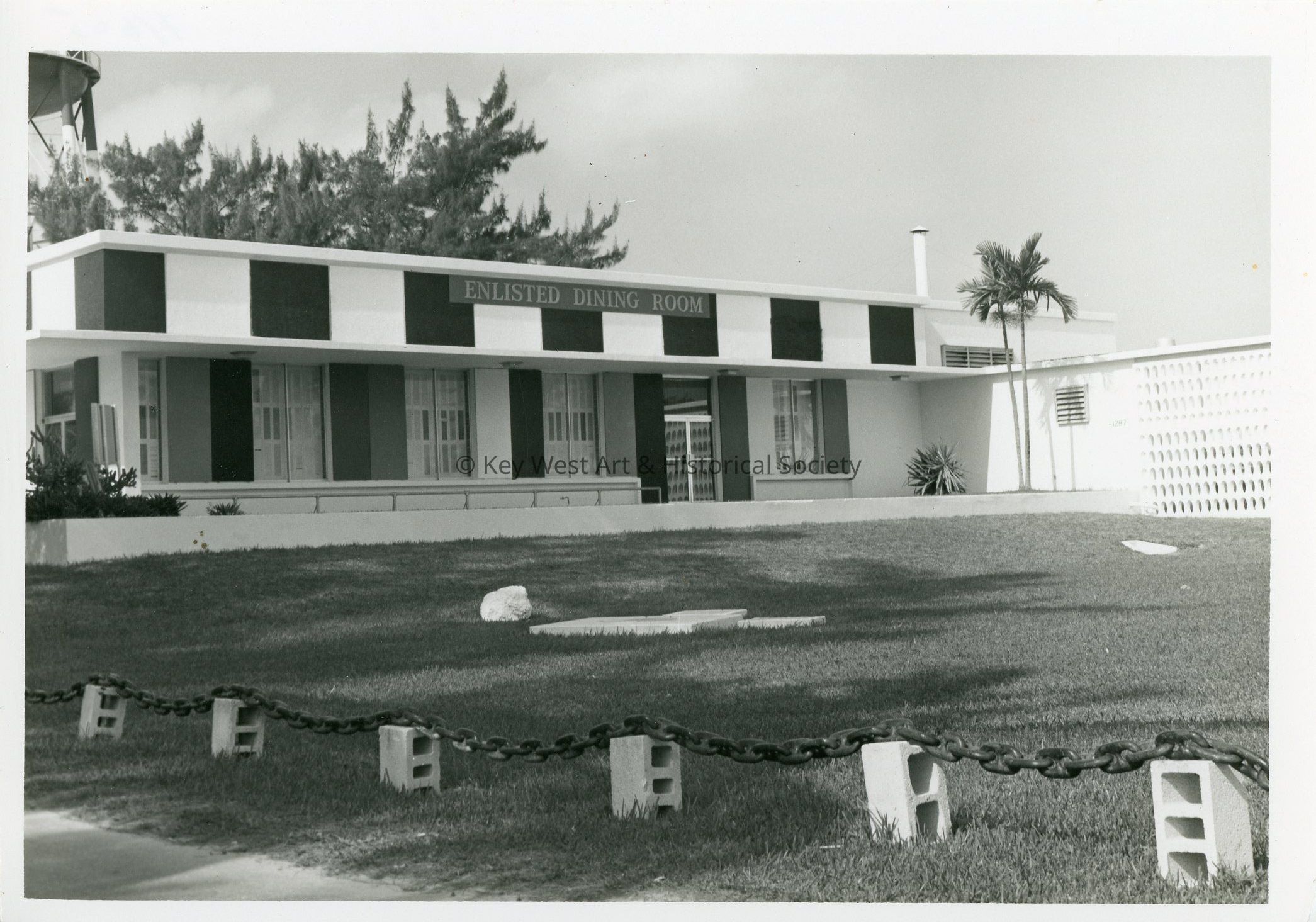 Black and white photograph of the enlisted dining room at Naval Station Key West.