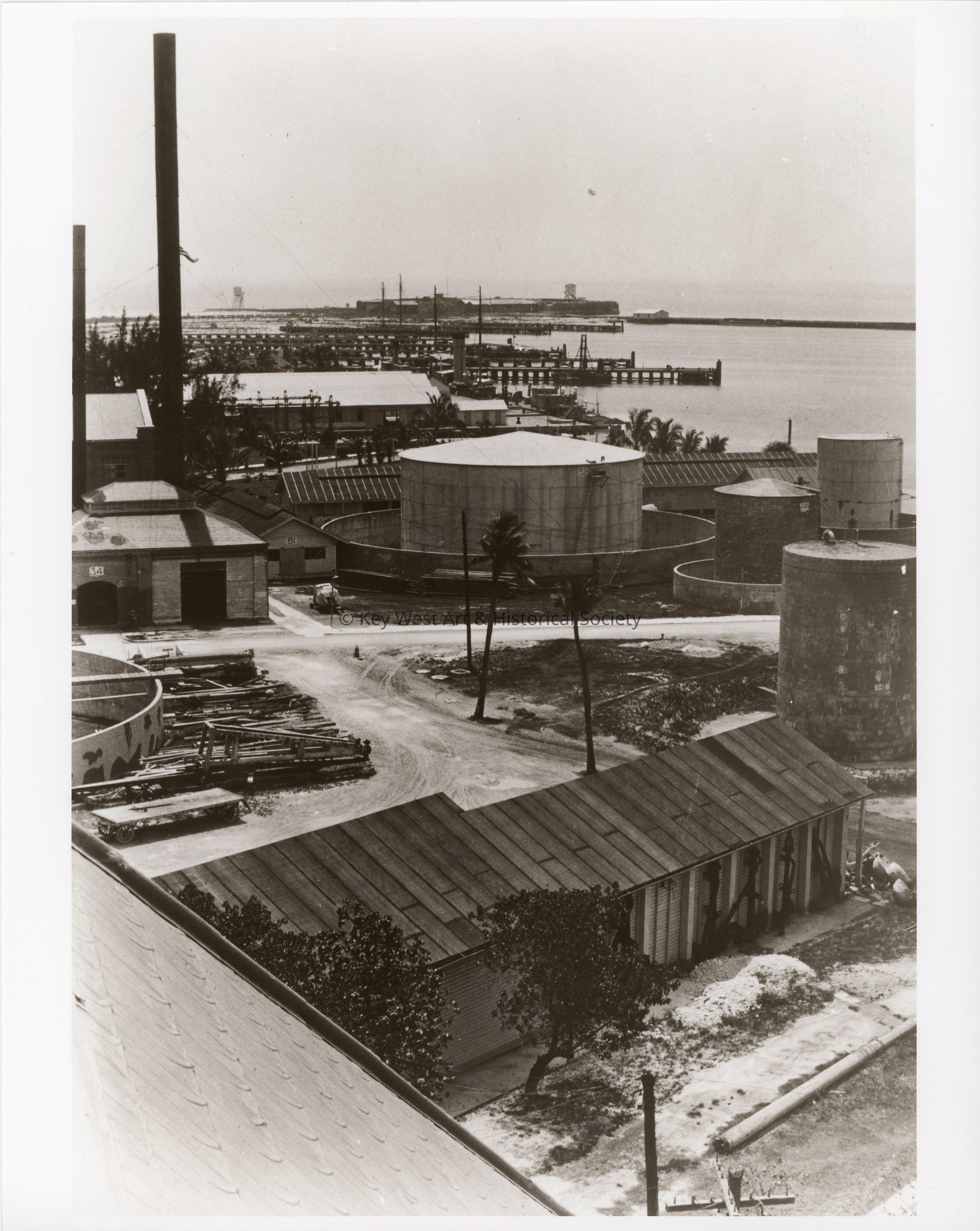 Black and white photograph of the Naval Station Key West looking toward Fort Zachary Taylor.