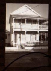 Negative of a 2 story house with three bays and a balcony and a side hallway. Accession # 2005.21.0001.Collection