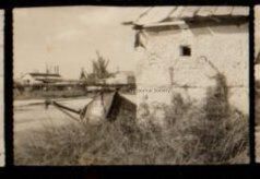 Negative showing a partial view of a run down building with an over grown lawn. Accession # 2005.21.0001.Collection