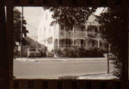 Negative showing a 2 story eyebrow house location unknown. Image was taken from the corner across the street.Collection