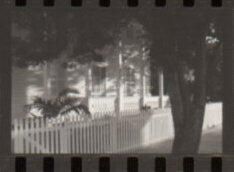 Negative showing the angeled view of a wooden fence and the front porch of a house located at 1108 Southard St. belongong to Nancy Friday. Accession # 2005.21.0001.Collection