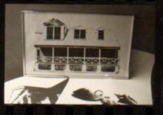 Negative of a framed sketch of a house and 2 other unframed sketches laying on a table. Accession # 2005.21.0001.Collection