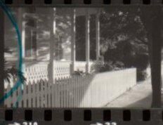 Negative showing a wooden fence and front porch of a house located at 1108 Southard St. belonging to Nancy FridayCollection