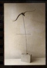 Negative showing a free standing sculpture of what looks like a bird. Shown in the Roof Top Gallery. Accession #2005.21.0001.Collection