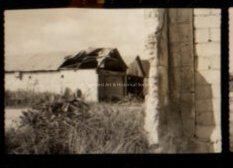 Negative showing run down buildings with the roof caving in on one of the buildings. Accession # 2005.21.0001.Collection