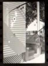 Negative showing the side view of 1108 Southard belonging to Nancy Friday. Image is of the side of the house and part of a window. THere is a black F on the side of the house.Collection
