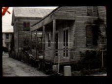 Negative looking down a lane showing a partial view of 3 houses. The first house is a woodn 2 story eyebrow house. The second is a wood 2 story house. The thrid is a 2 story bay house accross the street from the second house. Location unknown. Accession # 2008.21.0001.Collection