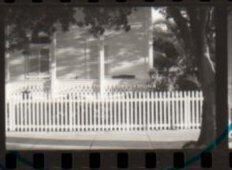 Negative showing a wooden fence, with a tree in front of it, and a porch. House is located at 1108 Southard St. Belonging to Nancy Friday. Accession # 2005.21.0001. 8 x 10 available.Collection
