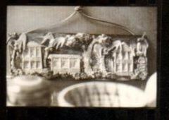 Negative showing a wall hanging with three houses with palm trees in between them. At the Roof Top Gallery. Accession # 2005.21.0001Collection