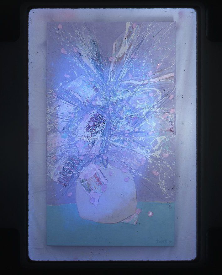 35mm color slide depicting the painting 'New Arrangement' by Ron Clemons. The work shows a vase with an abstract arrangement of flowers.