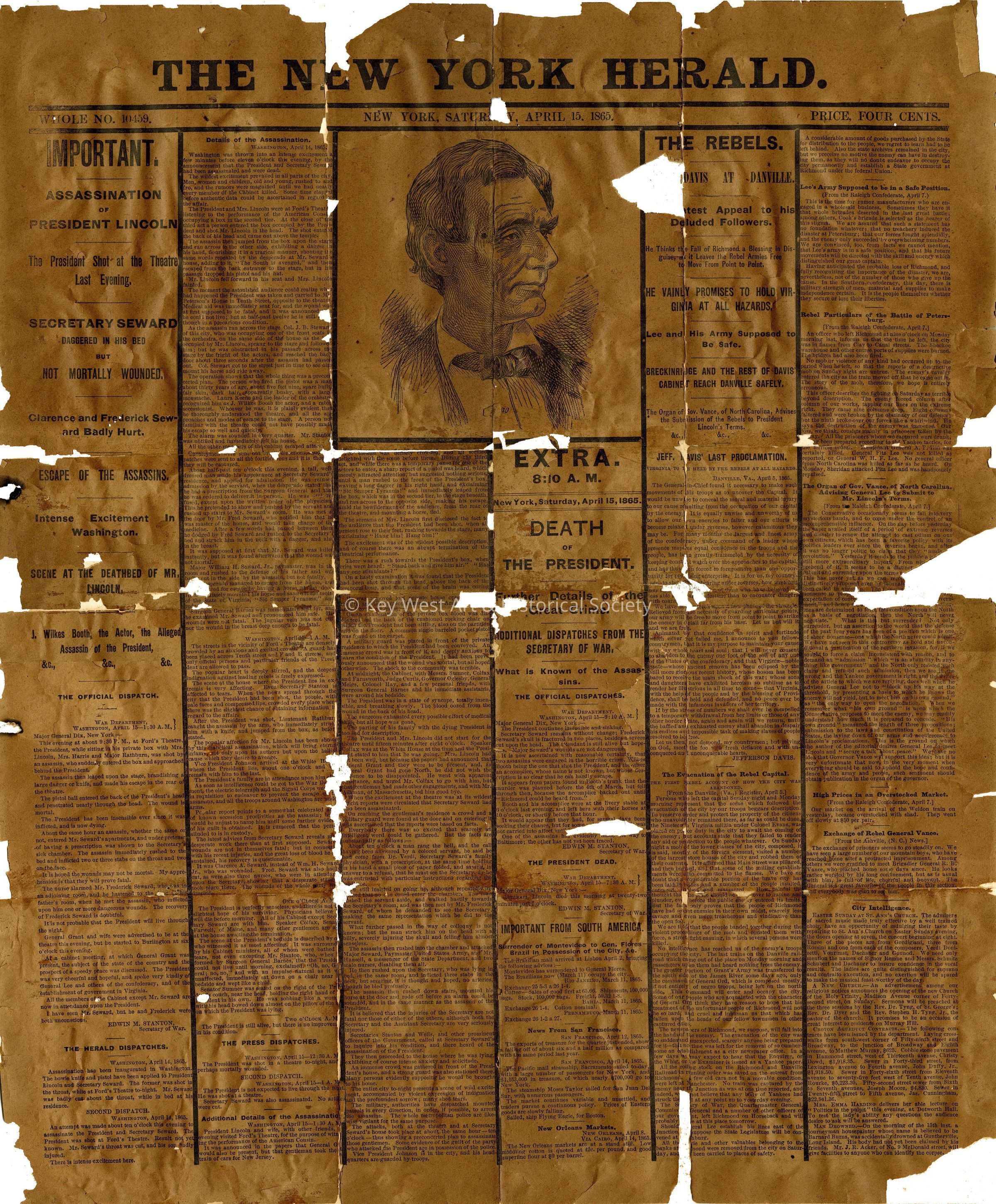 Edition of The New York Herald from April 15, 1965, detailing the assassination and death of US President Abraham Lincoln.
