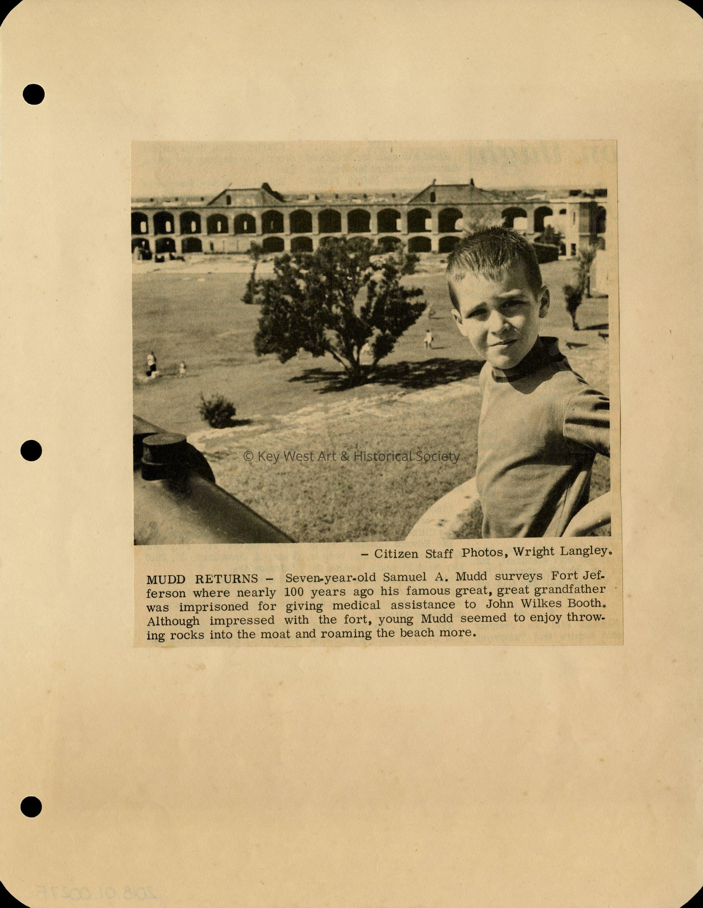 Newspaper Clipping of Dr. Mudd Family at Fort JeffersonEntry/Object ID