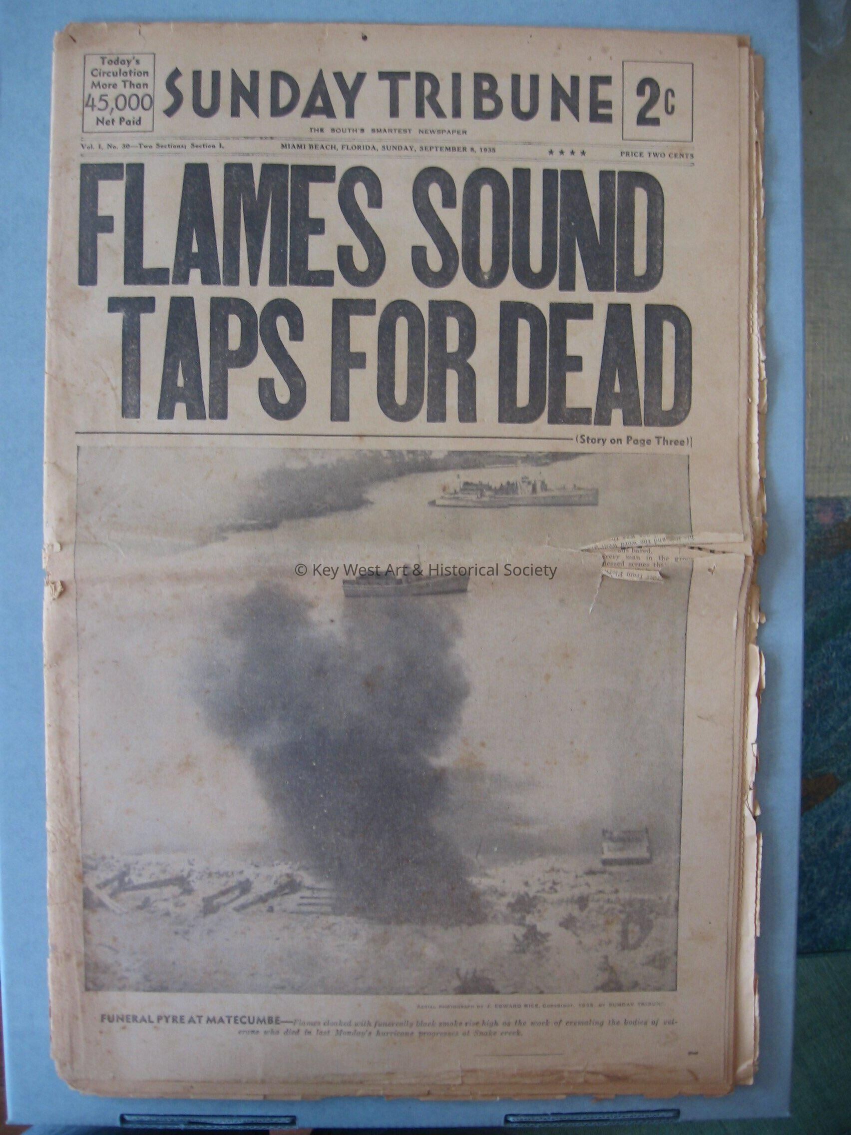 Miami Beach tabloid newspaper "Sunday Tribune". 24 pages from September 8, 1935. Paper is about the 1935 hurricane damage.