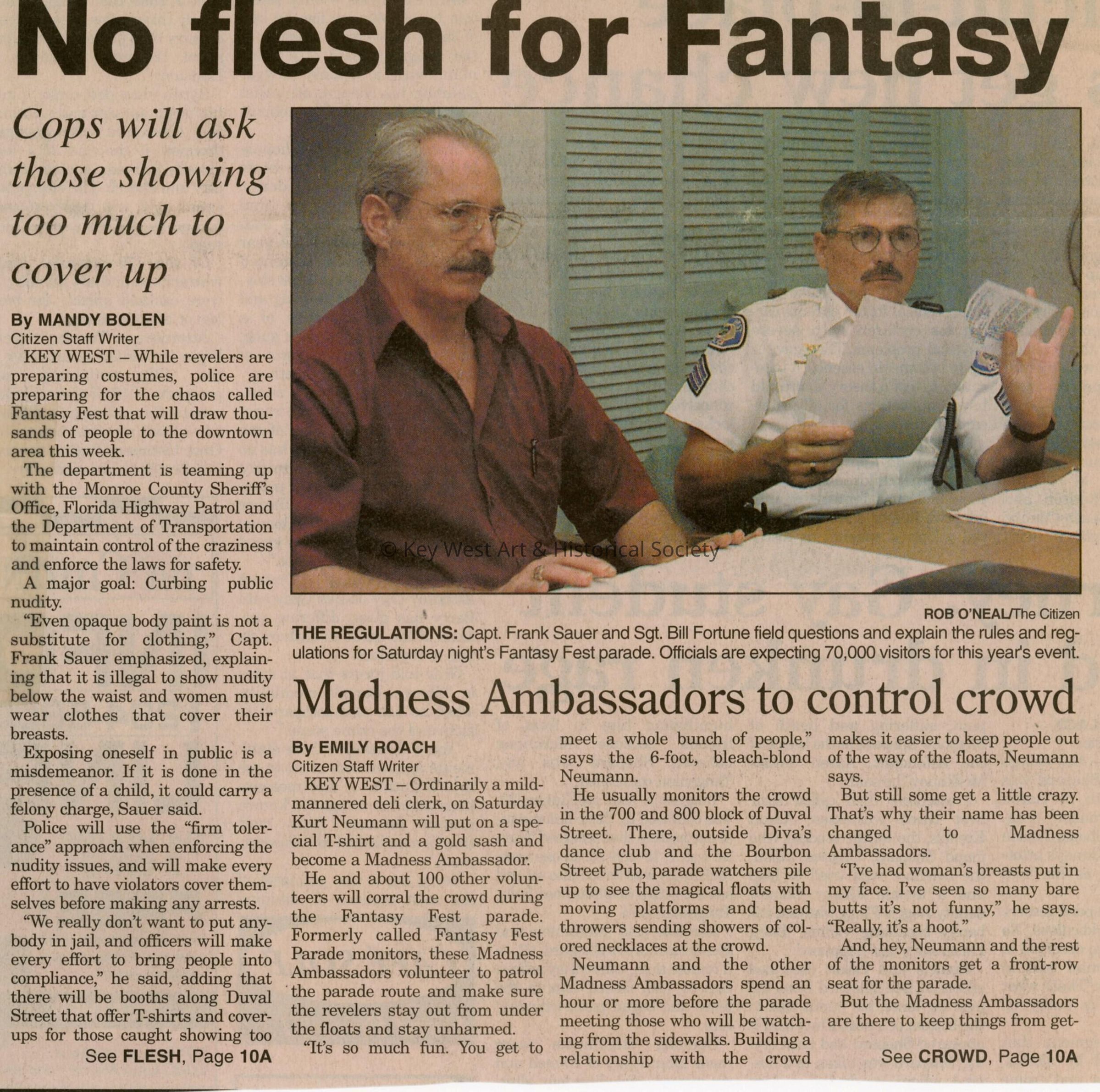 An article in the Key West Citizen about Fantasy Fest that reads No flesh f