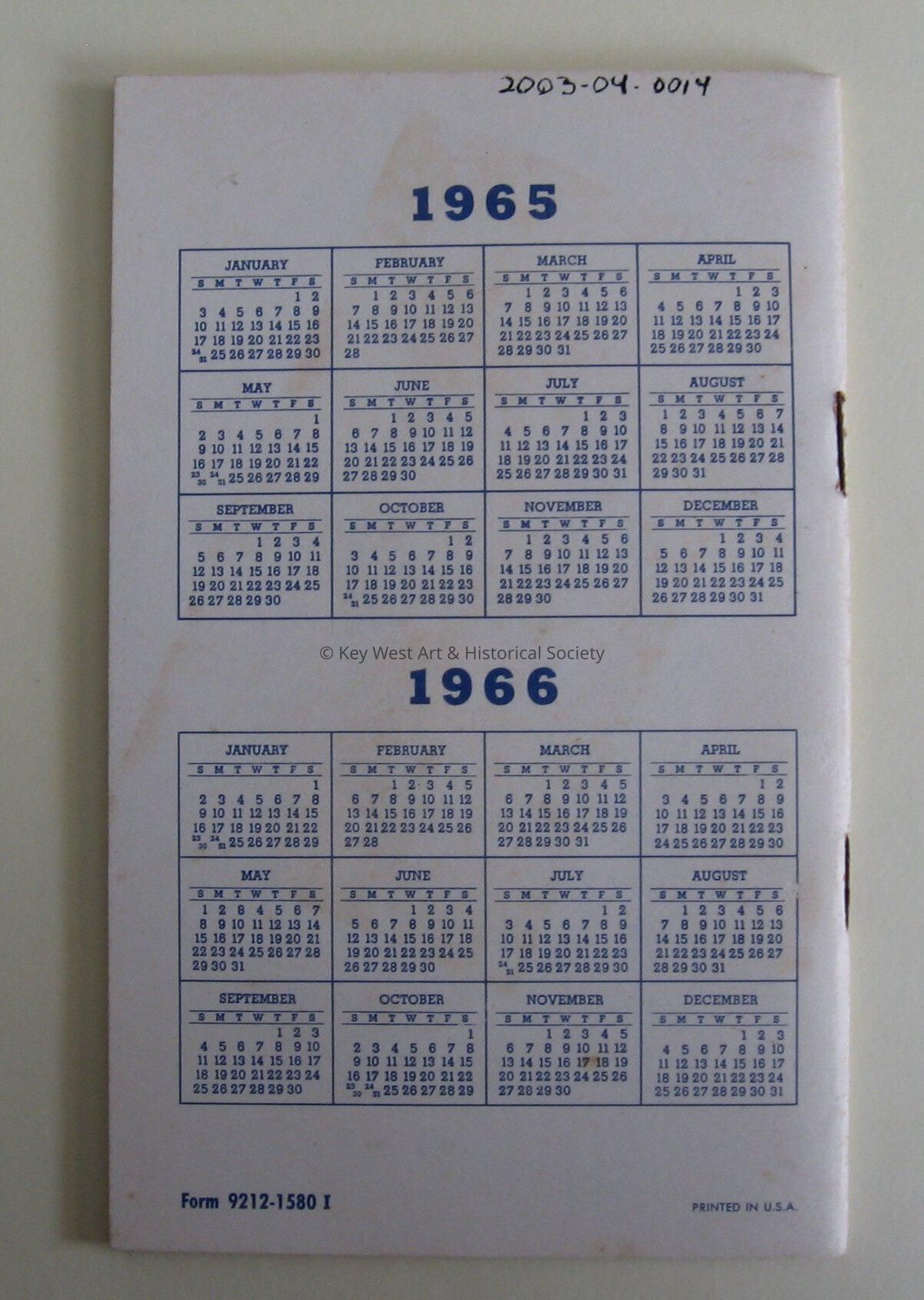 Pan Am Memory Aider notebook with 31 pages for notes. The back 2 pages have tap drill sizes on it and there is a colander for 1965 and 1966 on the back cover.