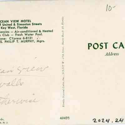 Postcard depicting the Ocean View Motel located on the corner of United and Simonton Streets, Key West, Florida.Collection