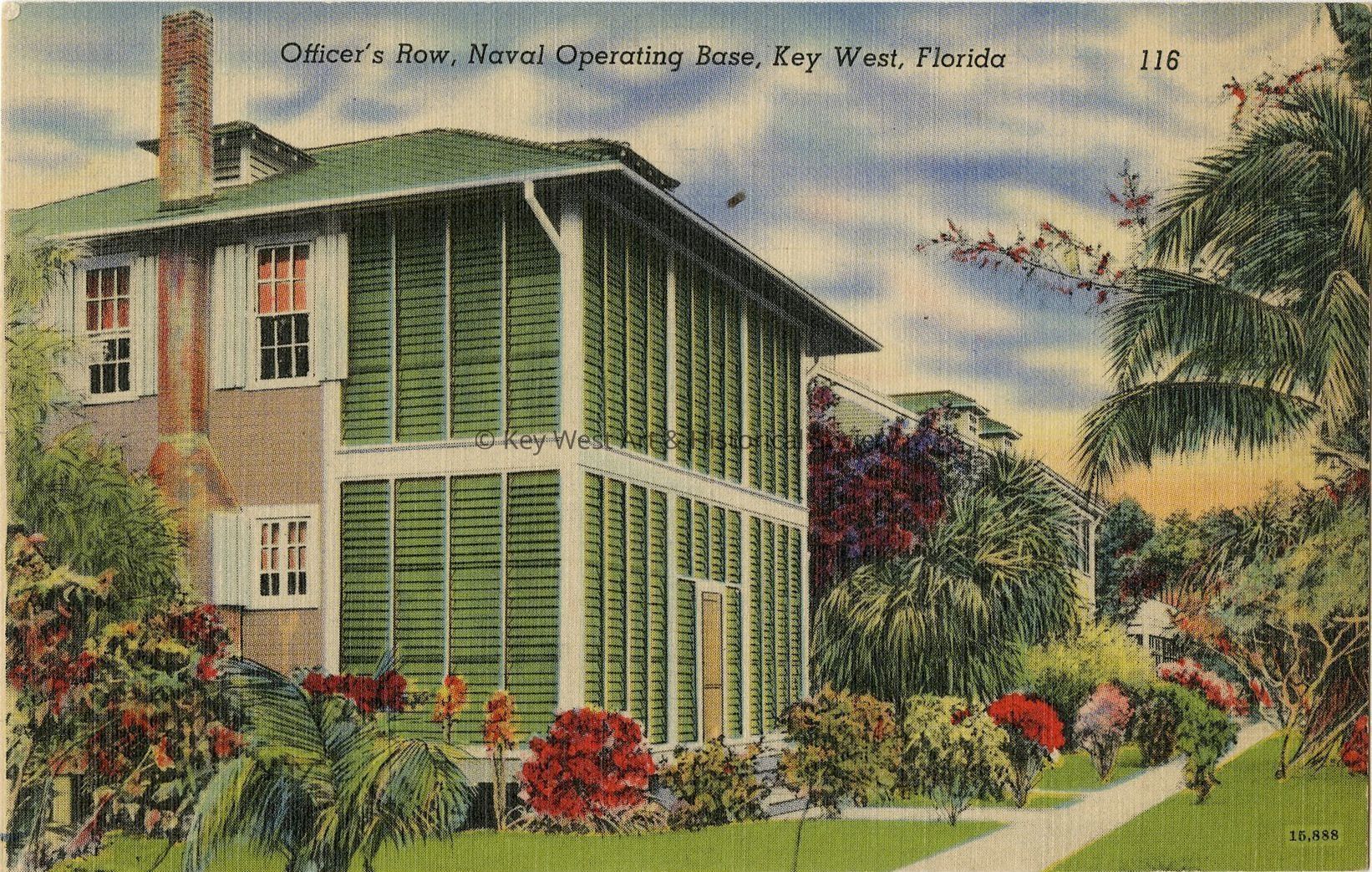 Postcard depicting the Officer's Row, Naval Operating Base in Key West, Florida.Collection