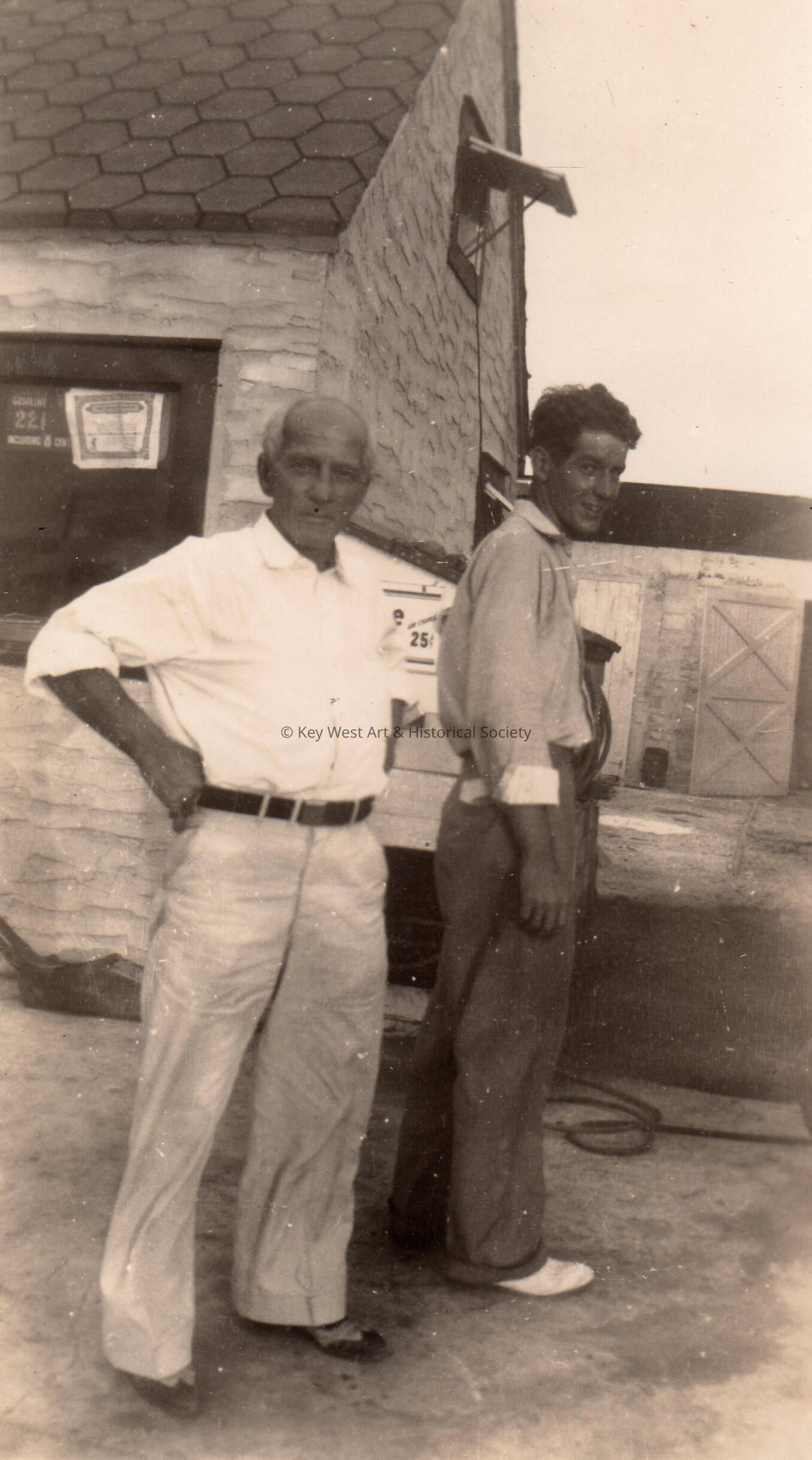 Old Seven Mile Bridge construction in the 1930s - Bob Waples and an unknown man.Collection