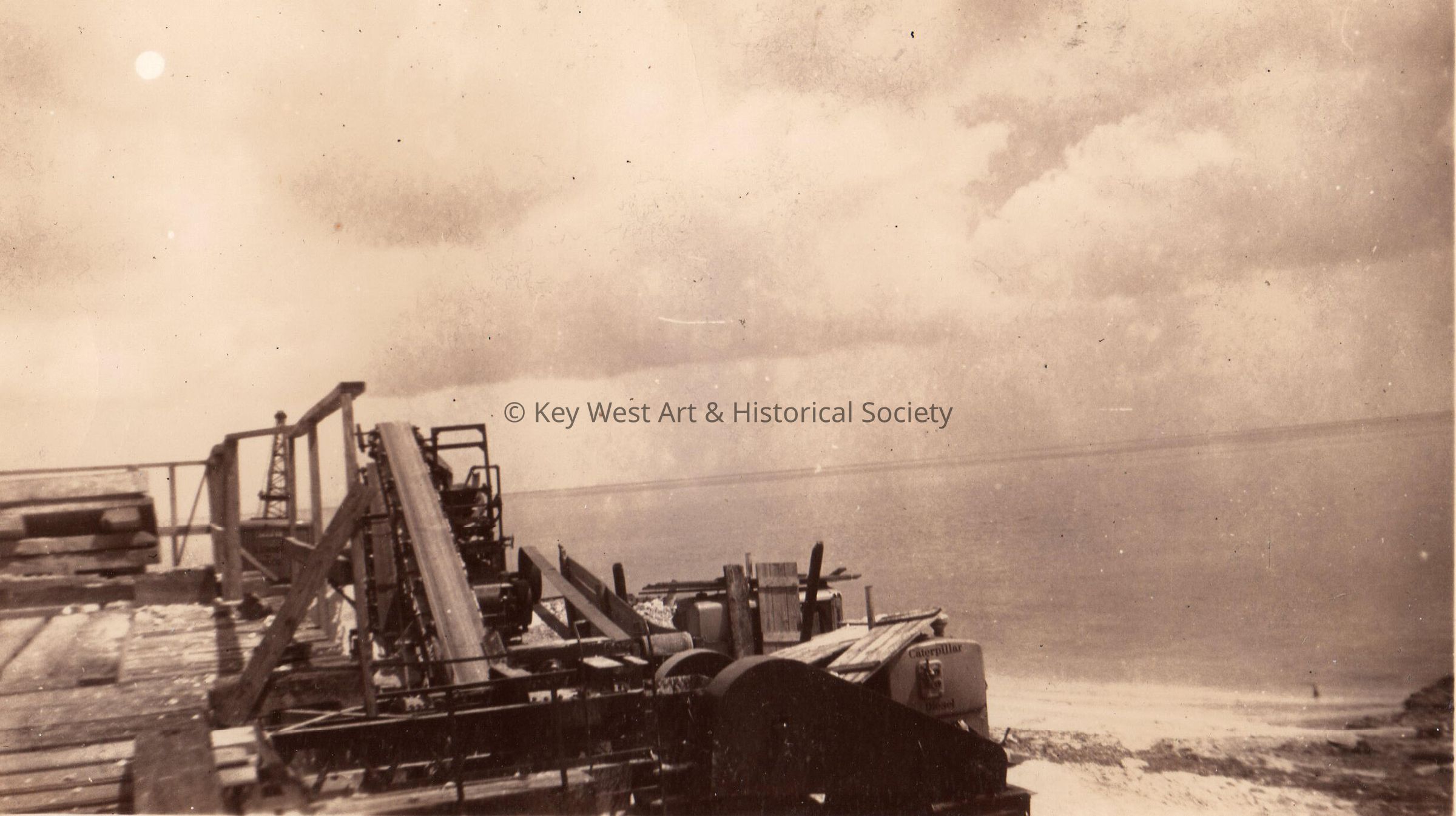 Old Seven Mile Bridge construction in the 1930s - equipment.
