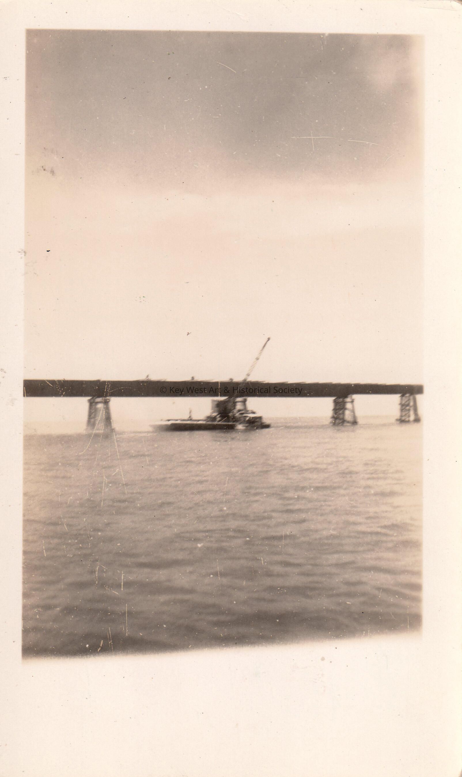 Old Seven Mile Bridge construction in the 1930s - boat.
