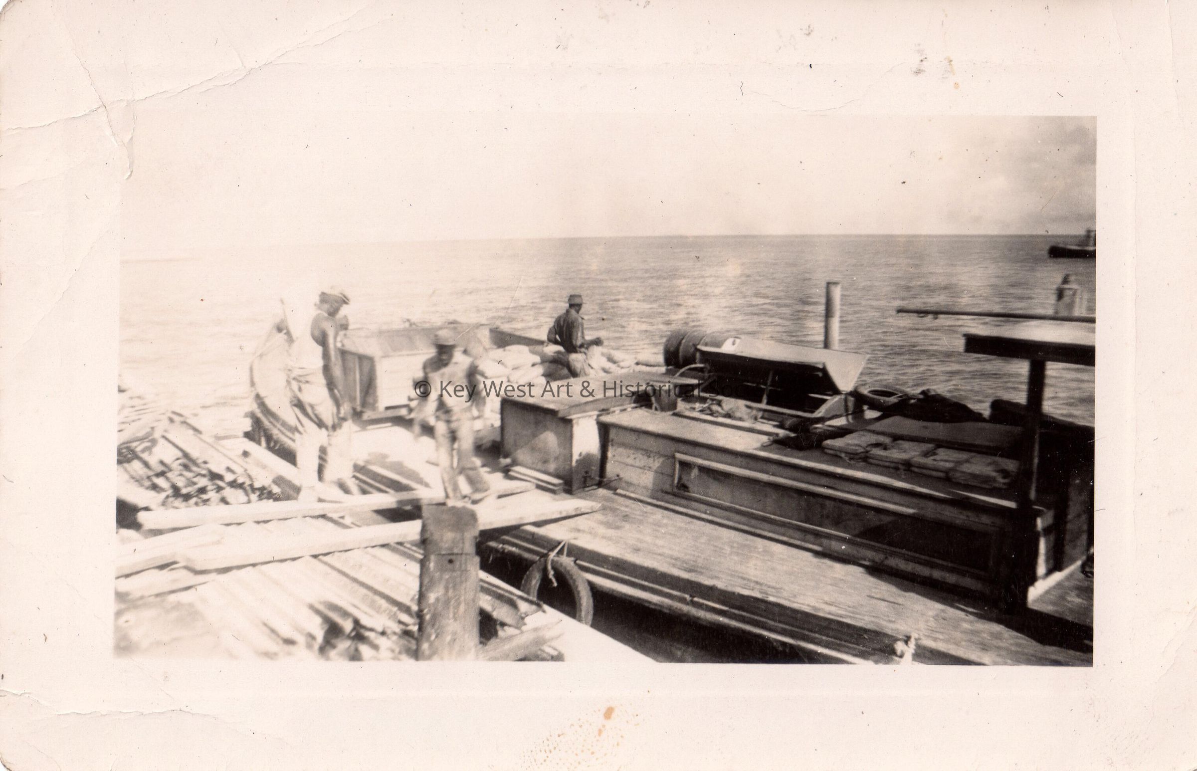 Old Seven Mile Bridge construction in the 1930s - workers on barge.Collection