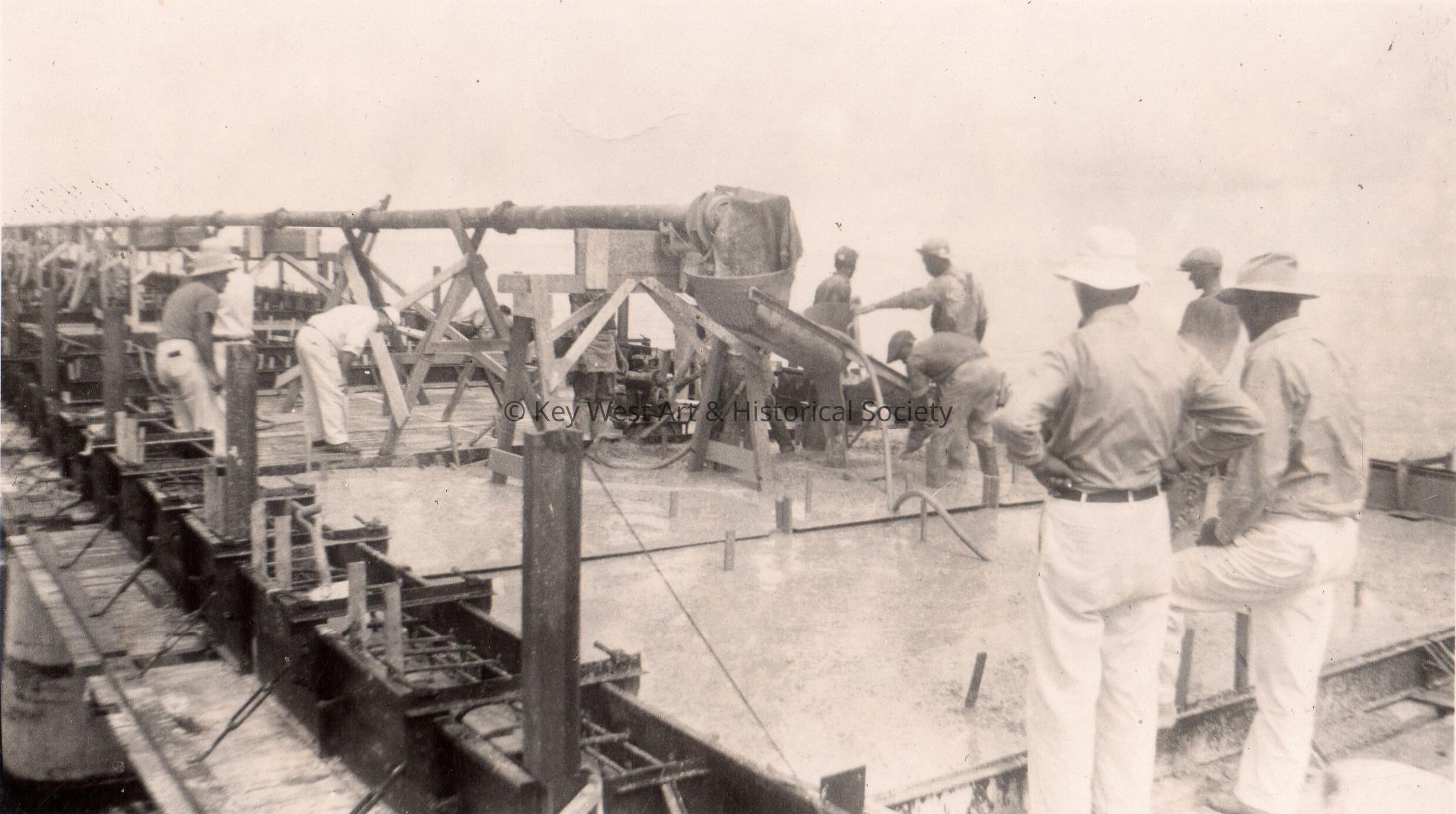 Old Seven Mile Bridge construction in the 1930s - pouring concrete.Collection