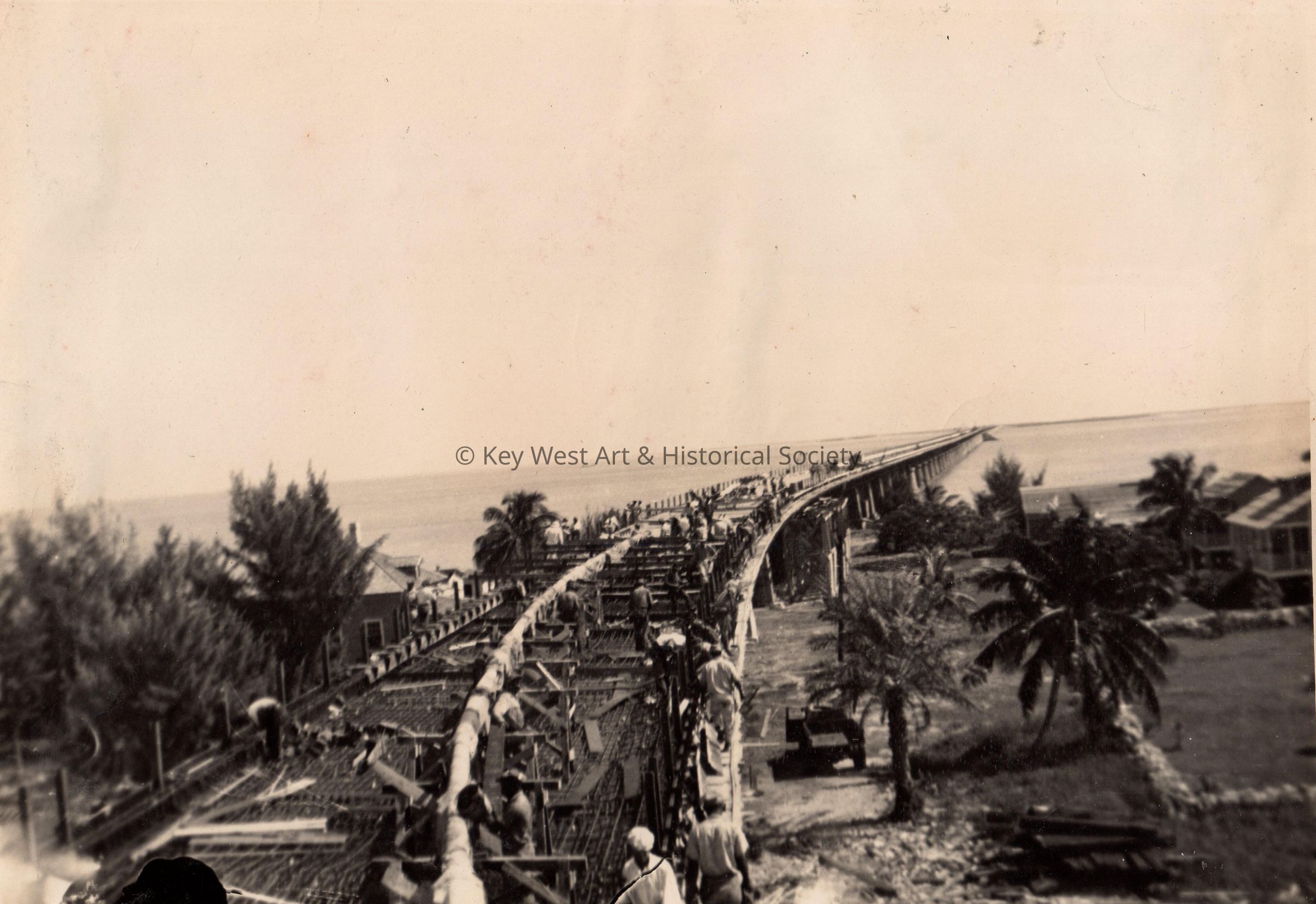 Old Seven Mile Bridge construction in the 1930s - roadbed being built over Pigeon Key.Collection