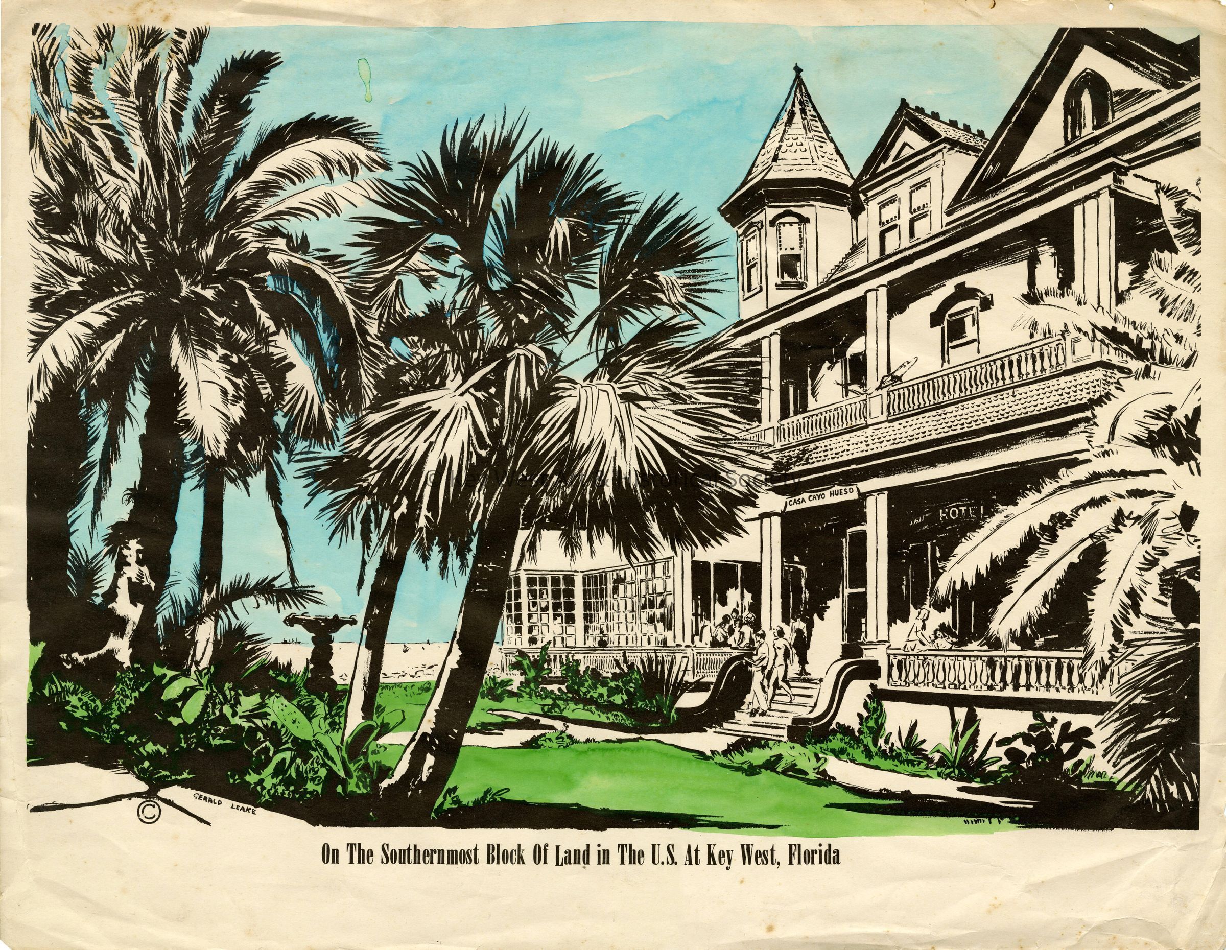 Print by Gerald Leake depicting the Southernmost House at 1400 Duval Street.