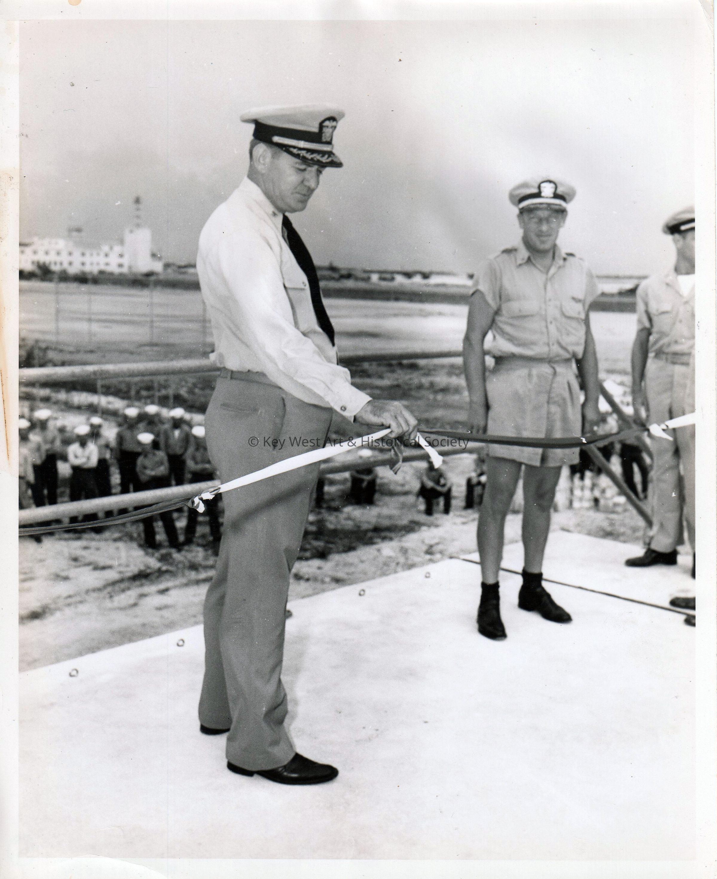 Black and white photograph from the official opening of the swimming pool at Naval Air Station Key West at Boca Chica.
