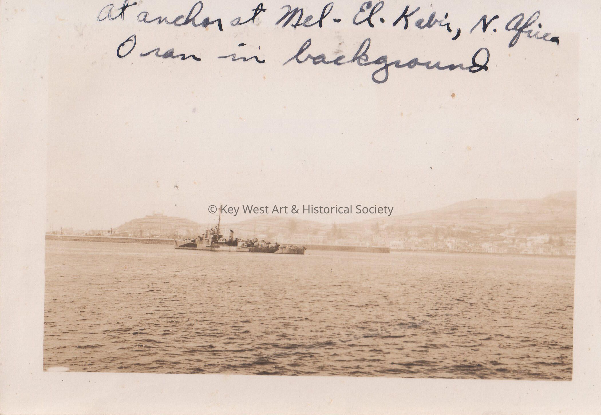 From the U.S.S. Key West (PF-17) in World War II; at anchor at Mel-El-Kabir, N. Africa, with Oran in background.Collection